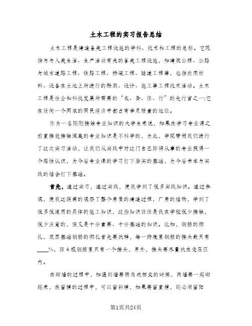 2024年土木工程实习报告总结范文一、实习背景____年我所在的学校组织了为期三个月的土木工程实习活动。