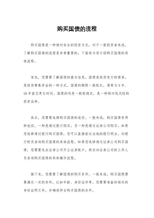 购买国债是一种相对安全的投资方式,对于一般投资者来说,了解购买国债的流程是非常重要的。
