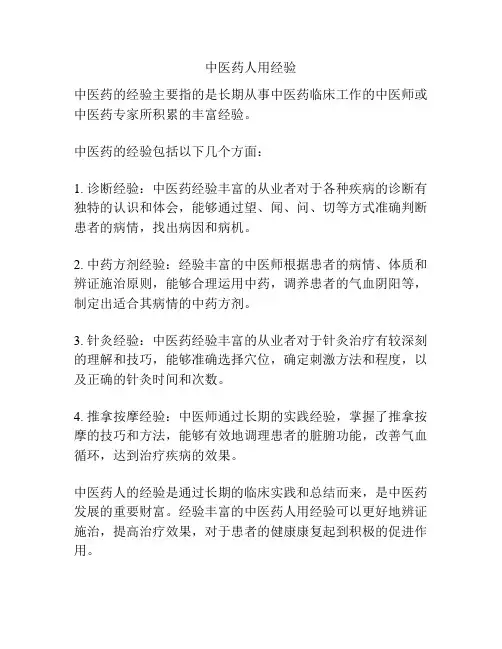 中医药的经验主要指的是长期从事中医药临床工作的中医师或中医药专家所积累的丰富经验。