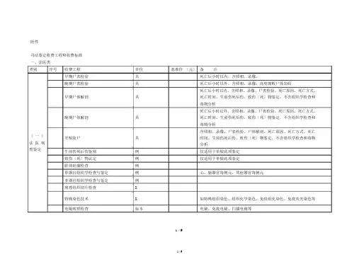 附件司法鉴定收费工程和收费标准一、法医类类别序号收费工程单位基准价〔元〕备注早期尸表检验具死亡后小时以内,含照相、录像。
