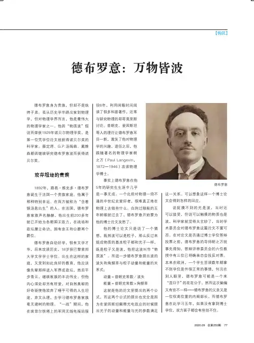 1.2主要贡献德布罗意出生于贵族家庭,他不愁吃不愁穿,只是想办法打发时间而已的年轻人。
