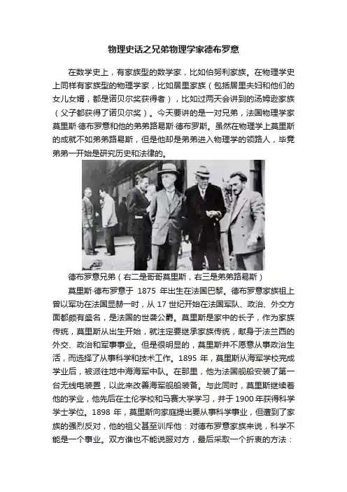 物理史话之兄弟物理学家德布罗意在数学史上,有家族型的数学家,比如伯努利家族。