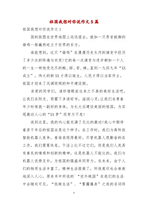 祖国我想对你说作文5篇祖国我想对你说作文1国的版图在世界地图上远远望去,就如一只昂首挺胸的雄鸡一般巍然屹立于世界的东方。