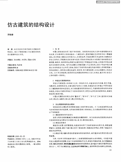 2. 材料的选择在仿古建筑的设计中,材料的选择至关重要。