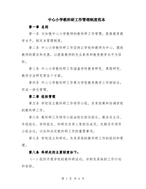 中心小学教科研工作管理制度范本第一章总则第一条为加强中心小学教师的教科研工作管理,提高教育教学水平,制定本管理制度。