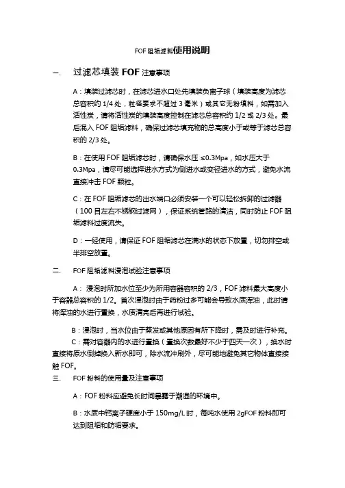 C:在FOF阻垢滤芯的出水端口必须安装一个可以轻松拆卸的过滤器