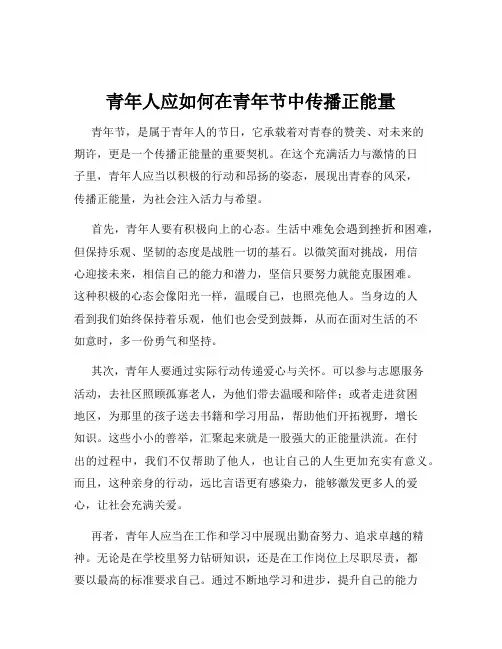 青年人应如何在青年节中传播正能量青年节,是属于青年人的节日,它承载着对青春的赞美、对未来的期许,更是一个传播正能量的重要契机。