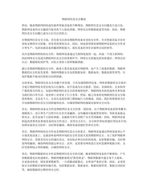 物联网信息安全概述然而,随着物联网的快速发展和智能设备的不断增加,物联网信息安全问题也日益凸显。
