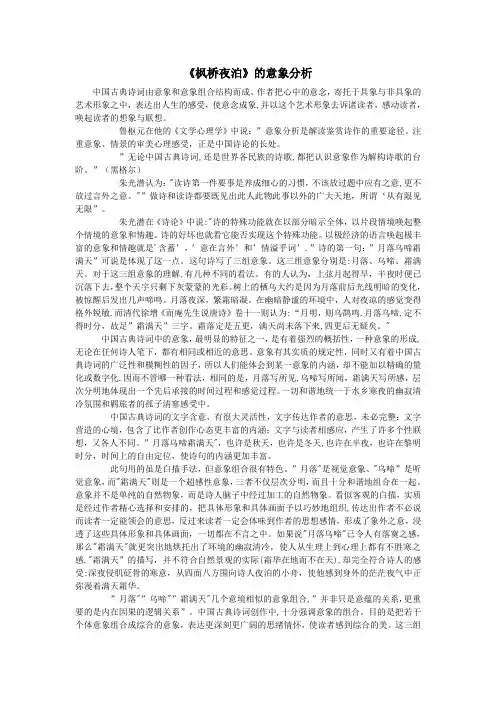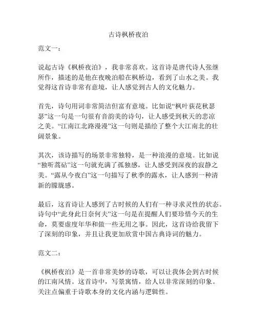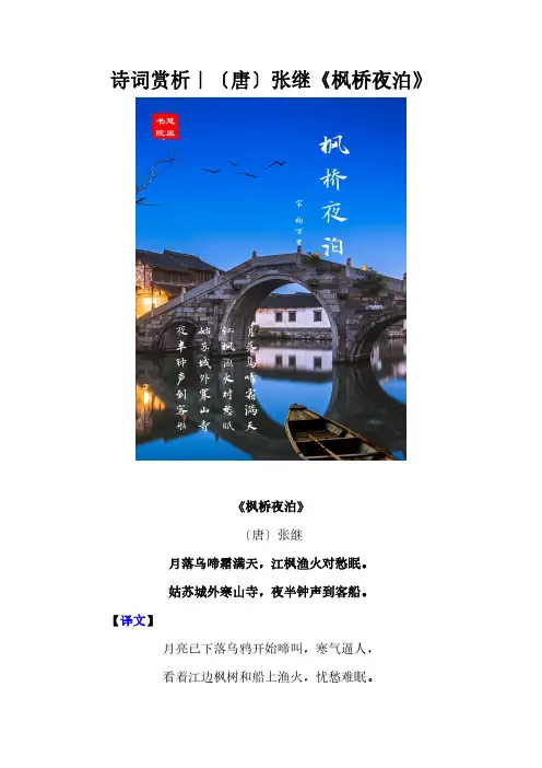2.唐诗《枫桥夜泊》及其译文的音韵美分析原文:枫桥夜泊张继月落乌啼霜满天,江枫渔火对愁眠。