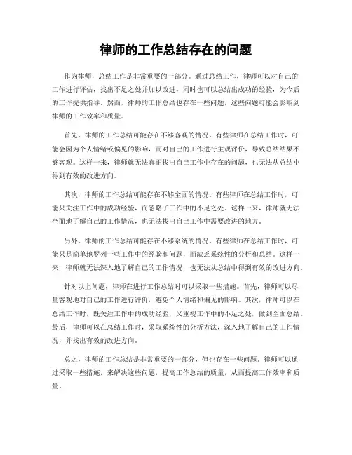 然而,很多律师在工作总结中存在着一些问题,这些问题可能会影响到案件的结果和客户的利益。