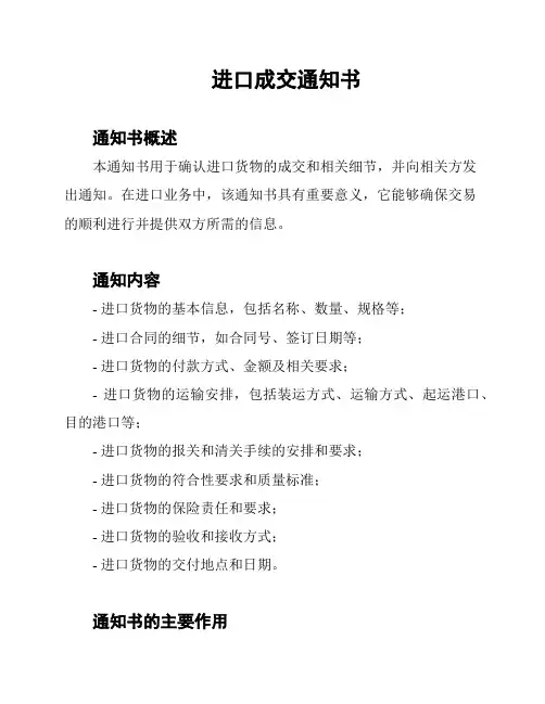 - 本通知书仅限于确认进口货物的成交和相关细节,不涉及其他法律事项;