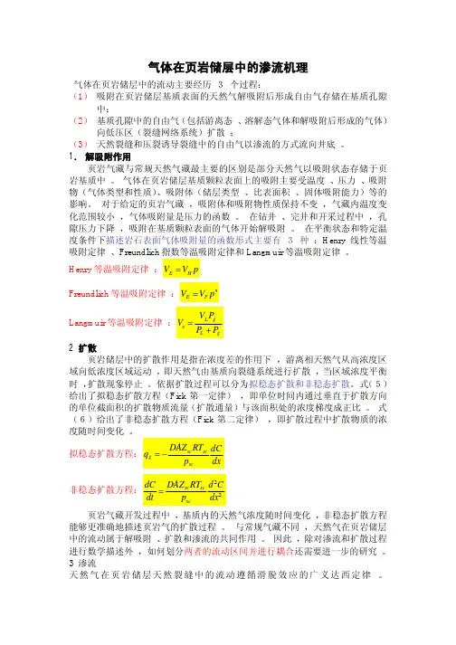 1. 解吸附作用页岩气藏与常规天然气藏最主要的区别是部分天然气以吸附状态存储于页岩基质中 。