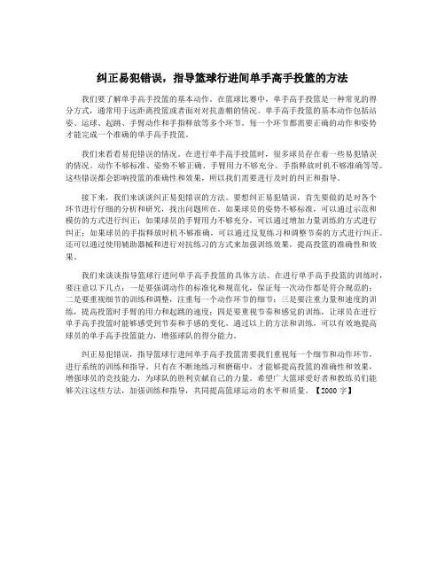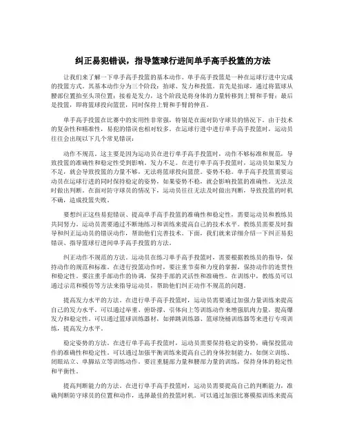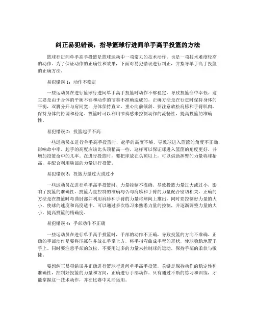 纠正易犯错误,指导篮球行进间单手高手投篮的方法一、易犯错误的纠正1.姿势不稳定在进行单手高手投篮时,很多球员因为姿势不够稳定,导致投篮的准确性大大降低。