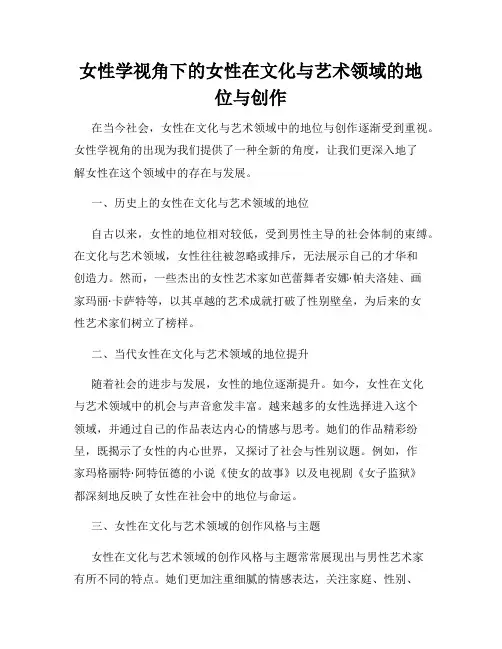 1.西方文化在西方文化中,女性的地位和角色在历史上一直是受到限制的。