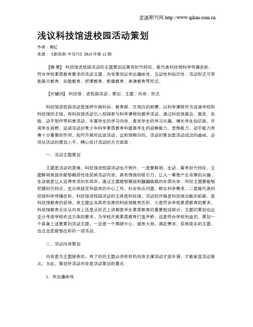 二、确定参观的对象和时间本次科技展览活动面向全校学生,目标对象为高中及初中的学生。