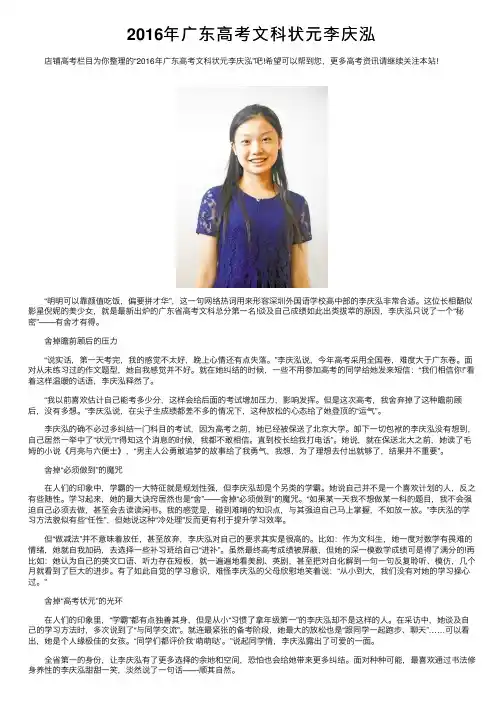 2016广东高考文科状元是来自深圳外国语学校李庆泓,一位美女学霸。