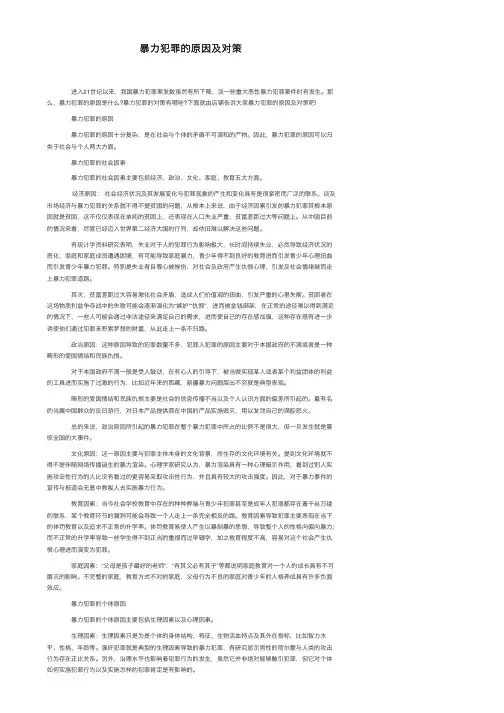 暴力犯罪的问题与解决方案暴力犯罪问题及其解决方案随着现代社会的快速发展,暴力犯罪问题越来越严重。