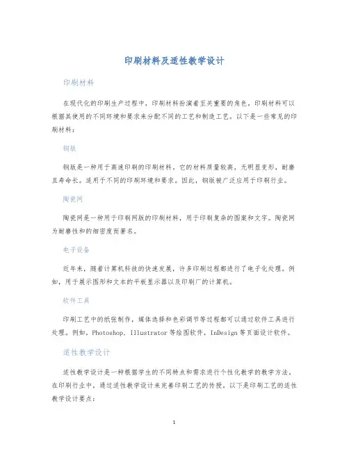印刷材料及适性教学设计印刷材料在现代化的印刷生产过程中,印刷材料扮演着至关重要的角色。
