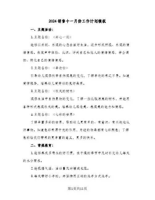 2024销售十一月份工作计划模板一、主题活动:⒈主题名称:《开心一刻》能够以开朗、乐观的心态去面对生活,逐步形成积极、乐观的情绪情感。