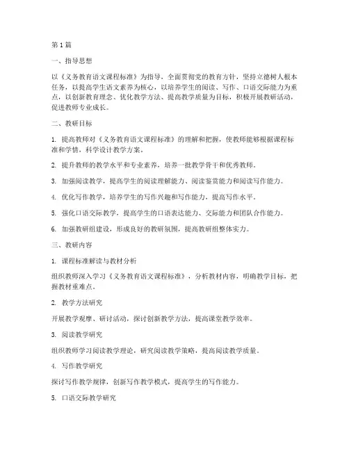 七年级语文教研组个人工作计划(7篇)七年级语文教研组个人工作计划(7篇)七年级语文教研组个人工作计划篇1 语文课程改革的字样在语文教师的心目中早已经不在新鲜,但作为一线教师却应该把这种创新与改革的意识深入骨髓。