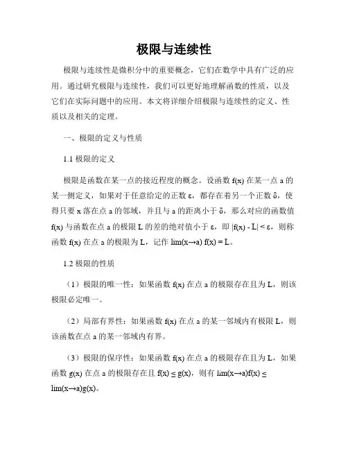 二、连续性的定义与性质2.1 连续性的定义函数连续性是指函数在定义域上没有间断点的性质。