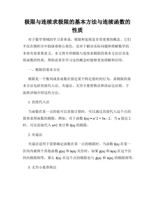 极限与连续求极限的基本方法与连续函数的性质对于数学领域的学习者来说,极限和连续是非常重要的概念。