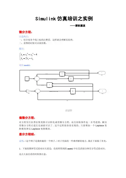III.Simulink仿真PID案例为了演示如何使用Simulink进行PID控制器的仿真,我们建立一个简单的PID控制器模型。