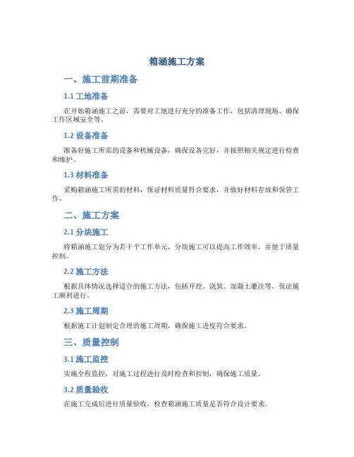 施工方案包括以下内容:4.2 施工方法在这一部分,我们将详细介绍箱涵施工的具体方法。
