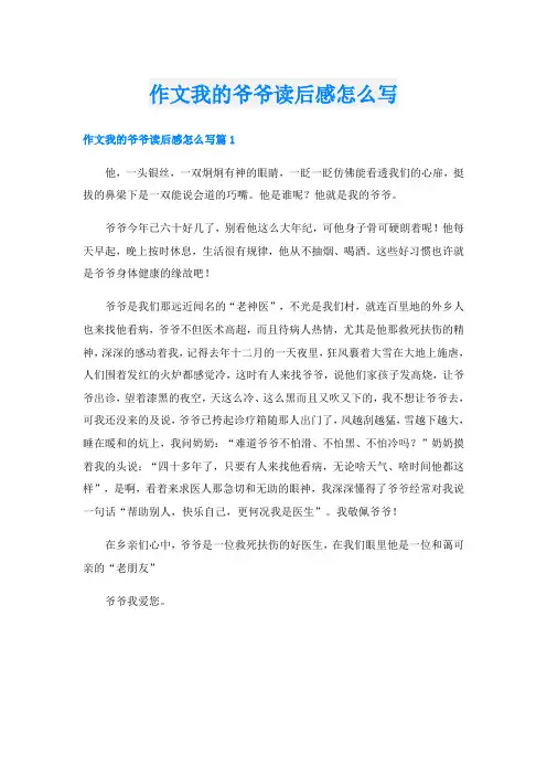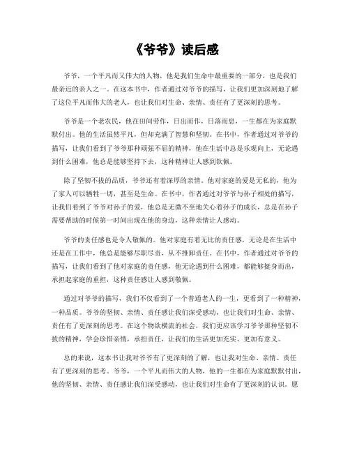 我爱你爷爷读后感在我眼中,爷爷是一位慈祥、睿智、善良、勤劳的长者。