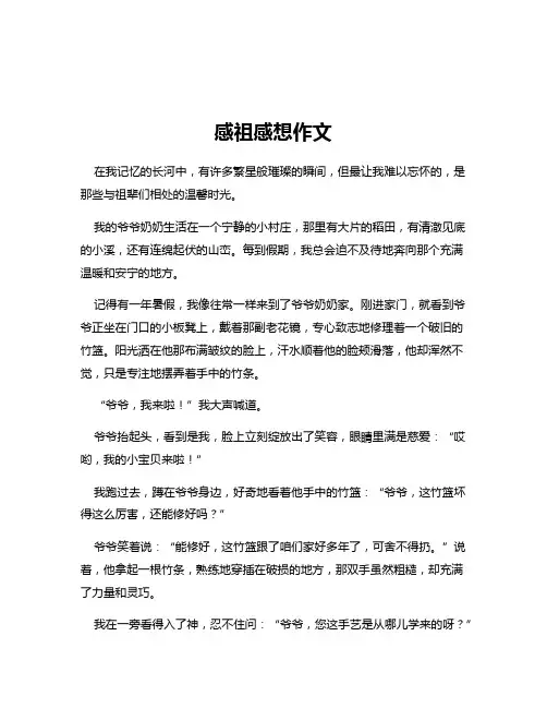 感祖感想作文在我记忆的长河中,有许多繁星般璀璨的瞬间,但最让我难以忘怀的,是那些与祖辈们相处的温馨时光。