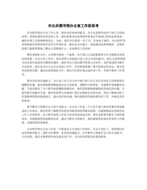 对公共图书馆办公室工作的思考公共图书馆作为为公众服务的机构,其办公室工作显得尤为重要。