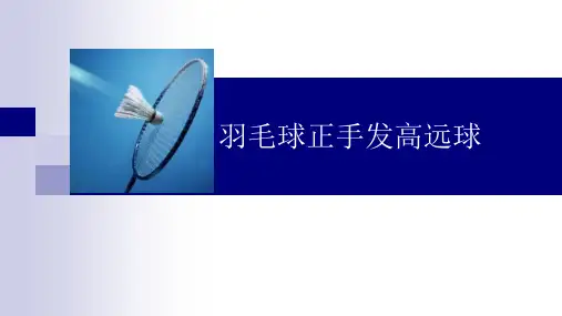 羽毛球正手发高远球说课稿1.ppt第一篇:羽毛球正手发高远球说课稿1.ppt尊敬的各位评委老师上午好!我今天说课的题目是《学习羽毛球正手发高远球》一、说课的内容:我选用的教材是高中羽毛球选项教学正手发高远球模块一,第3节课,水平5。