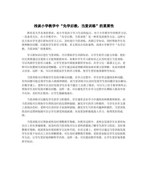 浅谈小学教学中“先学后教,当堂训练”的重要性在小学教学中,“先学后教,当堂训练”是一种重要的教学方法。