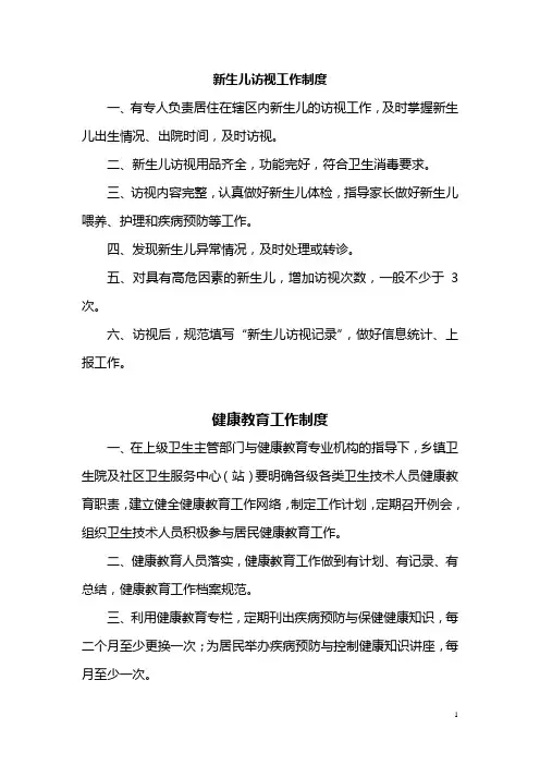 一、有专人负责居住在辖区内新生儿的访视工作,及时掌握新生儿出生情况、出院时间,及时访视。