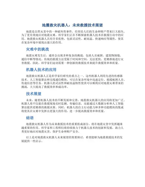 机器人技术在救援领域的应用与前景机器人技术在救援领域的应用与前景近年来,随着科技的快速发展,机器人技术在各个领域都得到了广泛的应用。
