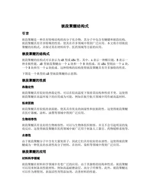 嵌段聚醚结构式引言嵌段聚醚是一种具有特殊结构的高分子化合物,其分子中包含有醚键和嵌段结构。