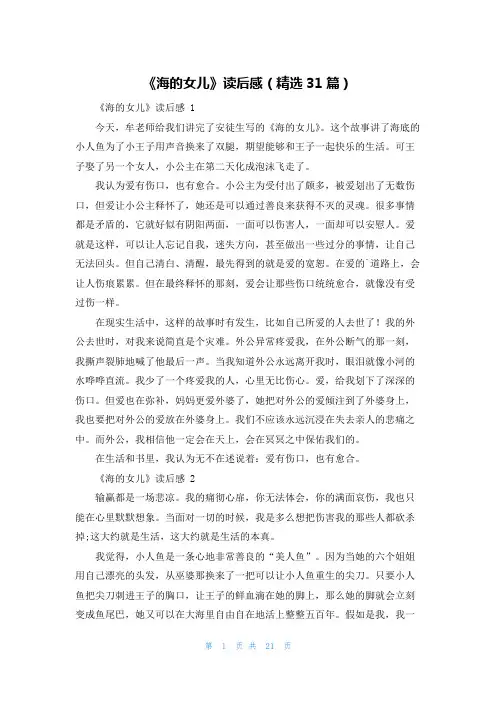 各位读友大家好,此文档由网络收集而来,欢迎您下载,谢谢篇一:海的女儿读后感50字