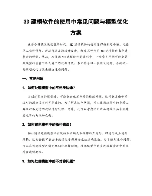 3Dmax建模过程中的常见问题与解决方法3Dmax是一种常用的建模软件,广泛应用于建筑设计、游戏开发、影视特效等领域。
