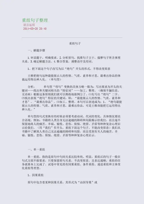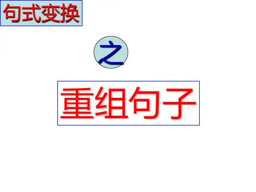 重组句子所谓“重组”是指要求在不改变句子原意的前提下,改变陈述对象而对句子进行重新组合。