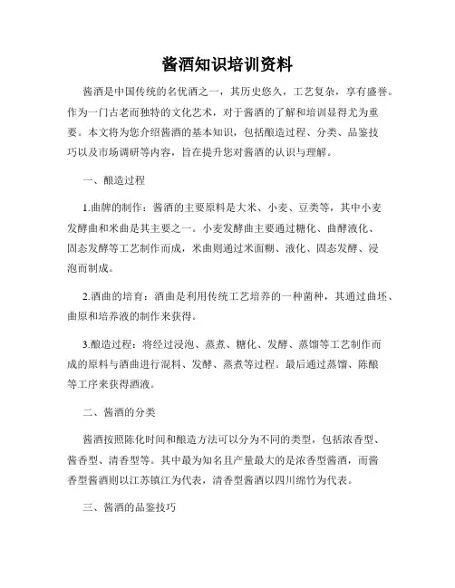 酱酒知识培训资料酱酒是中国传统的名优酒之一,其历史悠久,工艺复杂,享有盛誉。