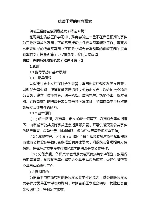 那要怎么制定科学的应急预案呢?下面是小编为大家整理的供暖工程的应急预案范文(精选6篇),仅供参考,欢迎大家阅读。