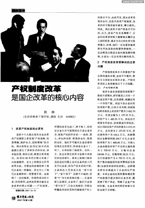 1. 产权制度改革产权制度改革是国企改革的核心和基础。