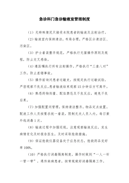 门急诊输液管理制度第一章总则第一条为了保障医院门急诊输液的安全和有效性,规范门急诊输液管理工作,特订立本制度。