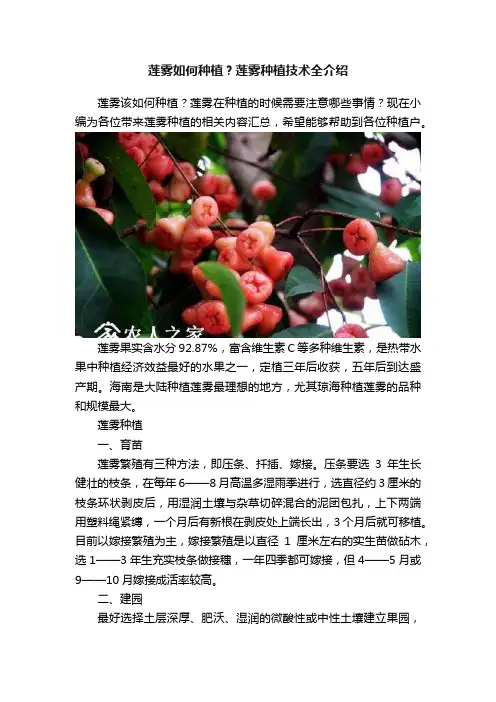 莲雾的种植方法与技术莲雾,又称为番荔枝,是一种热带水果,原产于南亚地区。