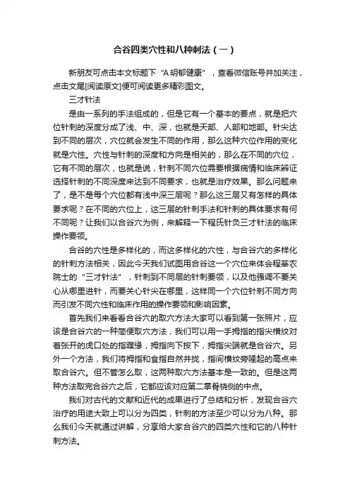 合谷四类穴性和八种刺法(一)新朋友可点击本文标题下“A明郁健康”,查看微信账号并加关注,点击文尾[阅读原文]便可阅读更多精彩图文。