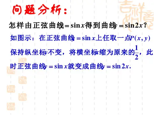 如图示:在正弦曲线y sin x上任取一点P( x, y), 保持横坐标x不变,将纵坐标y伸长原来的3倍, 则正弦曲线y sin x就变成曲线y 3sin x.