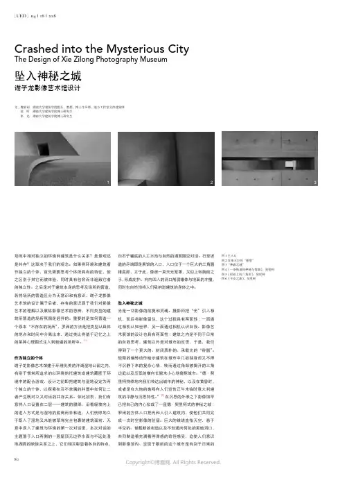 80坠入神秘之城谢子龙影像艺术馆设计Crashed into the Mysterious CityThe Design of Xie Zilong Photography Museum文_魏春雨 湖南大学建筑学院院长、教授、博士生导师,地方工作室主持建筑师 沈 昕 湖南大学建筑学院博士研究生 张 光 湖南大学建筑学院博士研究生场地中相对独立的环境和建筑是什么关系?是景观还是共存?这取决于我们的观念。