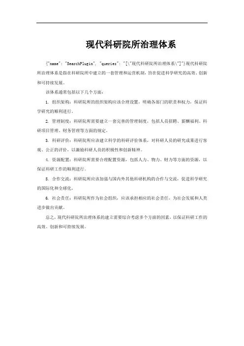 现代农业科研院所建设的思考一、现代农业科研院所的本质和内涵现代农业科研院所:关键理解“现代”、“农业”、“科研”、“院所”八字内涵。