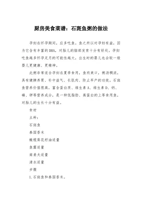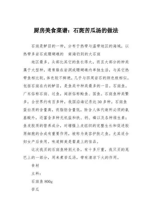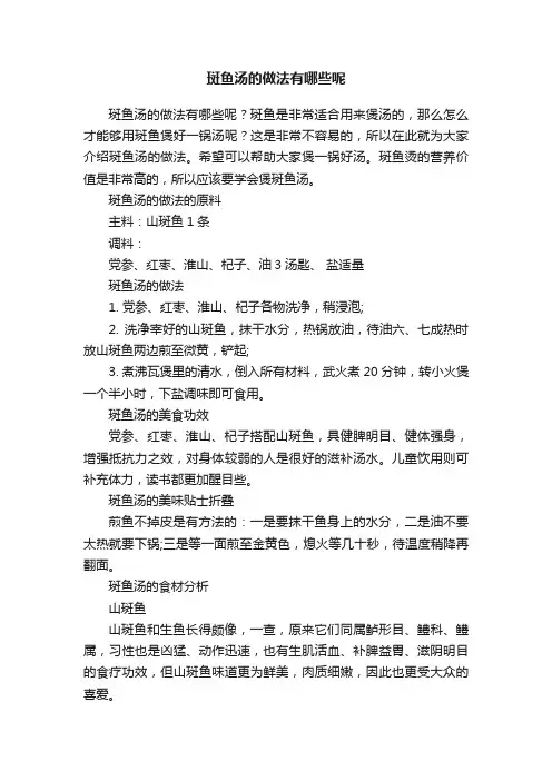 鱼腥草煲生斑鱼汤的功效与作用鱼腥草煲生斑鱼汤是一道以生斑鱼和鱼腥草为主要材料的汤类食品。
