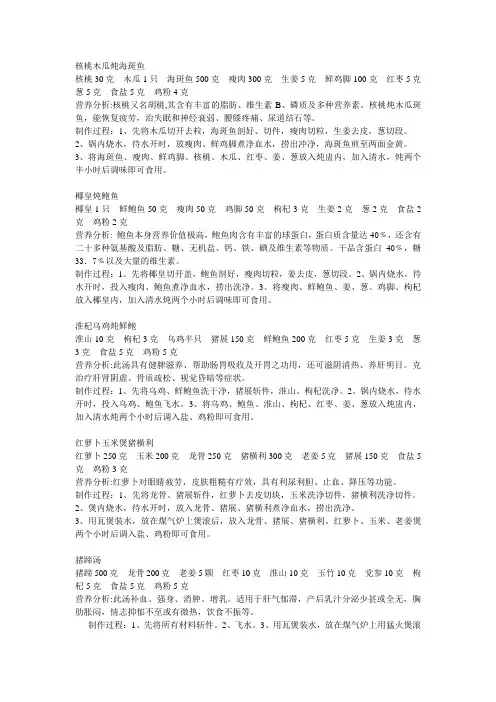 二、土茯苓炖水蛇:材料:土茯苓10克、水蛇仔50克、红枣两粒、姜1片。